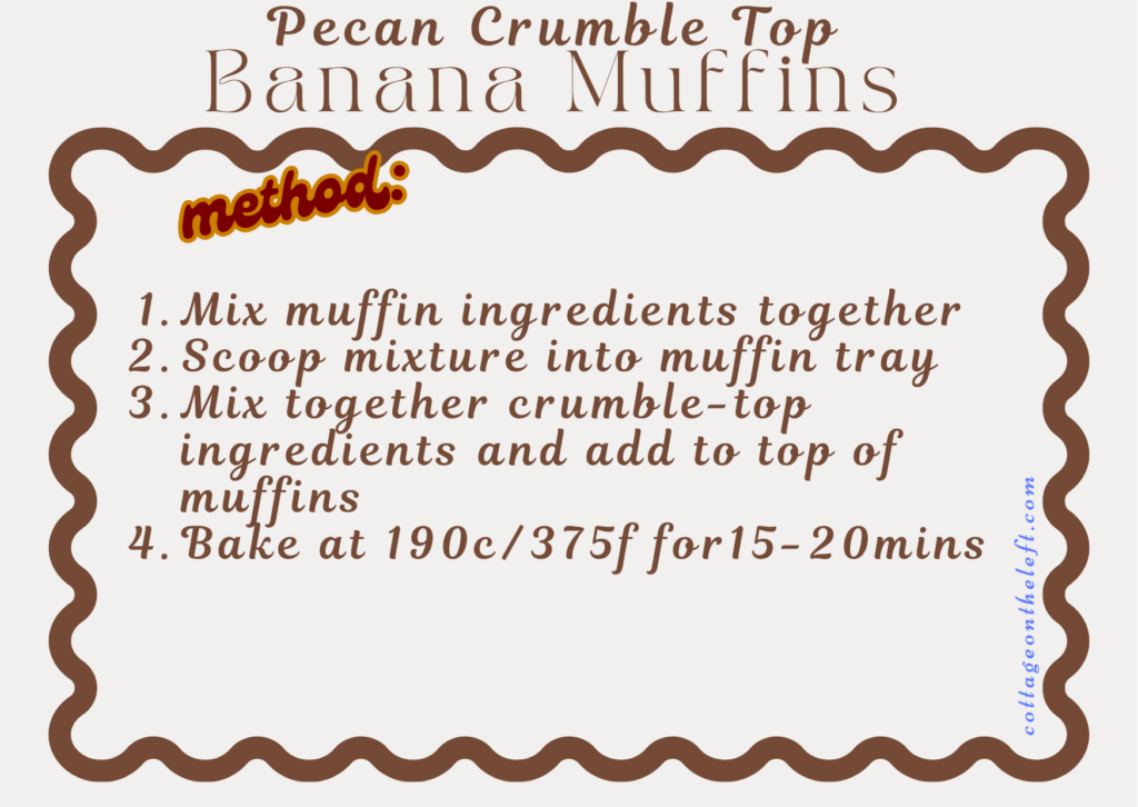 Moist, banana muffins with a crunchy, sweet, pecan crumble-top.